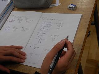 3年生の数学は三平方の定理です。通称、ピタゴラスの定理、a2+b2=c2に基づいて、様々な問題にチャレンジしています。