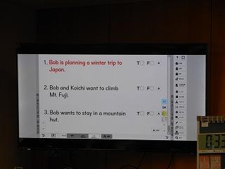 1年生の英語はLet'sReadの英文を楽しむ時間、2年生の英語はALTのジョナサン先生との英会話を楽しみました。