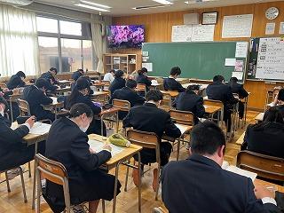 また、2年生へ向けて、「学校の様子を見るには、その学校の3年生を見ると一瞬で判断できる、だから、3年生は学校の顔なのである」という言葉を述べられ、3年生に向けての自覚を促しました。
