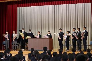 それぞれから津幡南中との思い出が語られ、生徒や先生たちにエールが送られました。