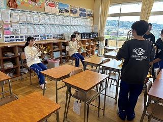 また、自分が担当した以外の楽器を体験してみよう、という企画もあり、3年生たちは新鮮な気持ちで楽器を演奏していました。吹奏楽の奥深さと面白さを改めて感じた時間だったのではないかと思います。