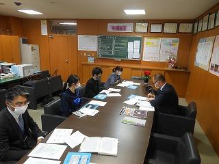 ▽この取組について、地元新聞社様から取材を受けました。小村前期生徒会長、松村後期生徒会長、輕山PTA副会長様、永井学校長の4名がインタビューに答えました。