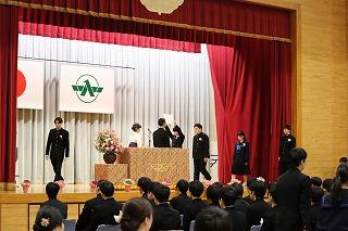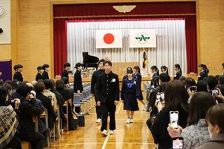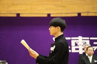 答辞は生徒会長でもある森幸翔さんが述べ、3年間を振り返るとともに、保護者、友人たち、在校生、先生方に感謝の気持ちを伝えました。