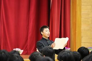 また、送辞では、2年生の長井旺心さんが、卒業生へ感謝の気持ちを伝えました。