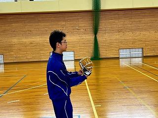 南中学校でもぜひそのグローブを見たい、使ってみたい、という思いが強く、小学校にお願いして、グローブを貸していただきました。
