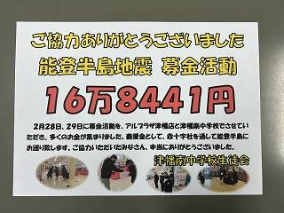 津幡南中学校、アルプラザ津幡で募金を募ったところ、集まった募金の金額は、