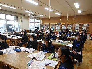 今日の午後は総合的な学習の時間で、1年生は進路学習に、2年生は学年プロ委の取組の振り返りと冬休みの計画づくりに取り組みました。1年生は3学期に職業に関することの学びを進め、2月1日には働く人に学ぶ会で10人の講師の先生方からお話をうかがいます。2年生は最上級生に向けて少しずつ緊張感が高まってきています。