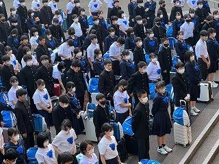 3年生の生徒たちは、ガイドさんの案内で、奈良の文化財等の説明を受けながら研修しています。