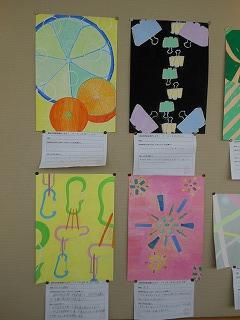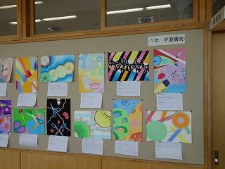 全学年で取り組んだ美術作品が随時展示されています。級友や先輩・後輩の作品を見ながら、こんな工夫もできるんだと刺激を受けることができますね。