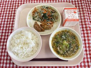 今月は冬休みの2年生家庭科課題であった「汁物メニューコンクール」最優秀賞の献立が出されます。今日はB部門(中華部門)の最優秀賞、2年4組兵部こはるさんの「ヘルシーでおいしい!坦々春雨スープ」でした。アピールポイントは低カロリーなのに、食べ応えがあるところ、中華料理の献立にぴったりだと思います!