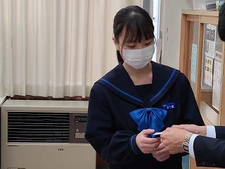 今日の帰りHRで、3年生全員に素敵なプレゼントが!本校の図書ボランティアの皆さんが志望校合格を祈って、お守りを作ってくださいました。色とりどりの千代紙で作られたお守り、担任の先生からやや緊張した面持ちで受け取っていました。いろいろな皆さんに支えられて、受験に臨んでいく3年生です。ここ2日間は私立・国立の推薦入試受験者への面接練習を行いました。そして、いよいよ明日はPTCAで決定した私立高校一般入試の願書指導です。