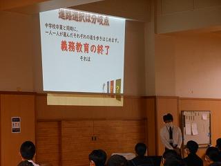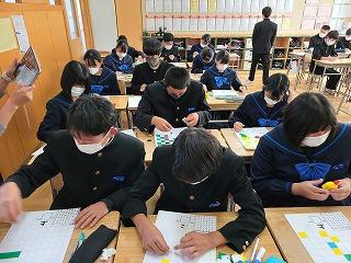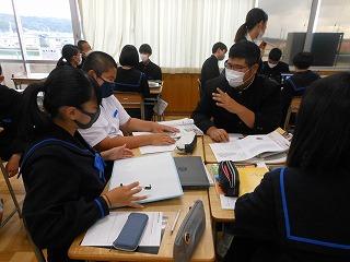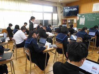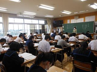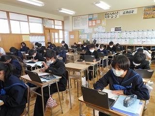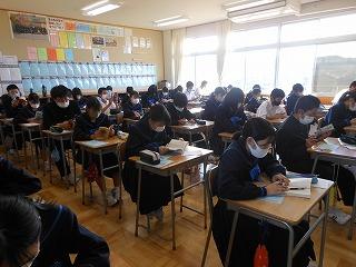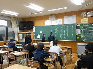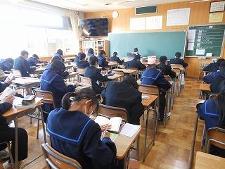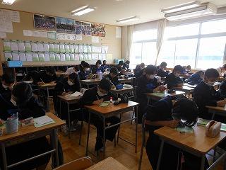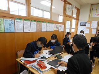 2年生はステージ発表の生徒は事前の打ち合わせを、他の生徒は先週の学年集会を受けて、早速上級学校調べに取り組んでいます。来週からはこれまでの学習がどれくらい定着しているかを確認する期間に入り、12月の町学力実態調査、1月からの講座学習に取り組んでいくこととなります。