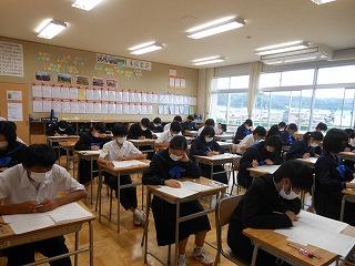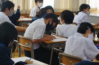 2年生は金沢自主プラン。朝方の大雨で天候が心配でしたが、現在雨は落ち着いているようです。今日の学校は1・3年生のみ。3年生は先週金曜日の2学期中間テストに続いて、第1回河北郡市統一テストに臨んでいます。また、1年生は昨日の校外学習の振り返りとともに、学校祭に向けての活動や弁論大会学級代表の選出などに取り組んでいます。