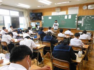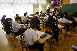 3年生の合唱コンクールの練習に続いて、1・2年生の音楽の授業でも歌う活動に取り組み始めました。1年生は「朝の風に」を、2年生は「夏の日の贈り物」を混声二部合唱で歌っています。マスクをしてではありますが、久しぶりの歌う活動です。素敵なハーモニーを響かせていきたいですね。