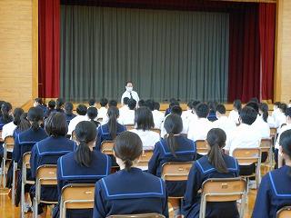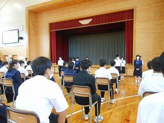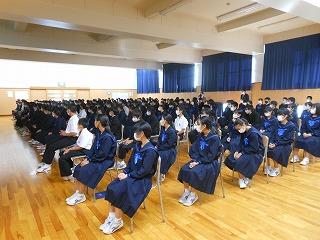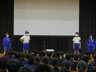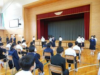 11月の全校集会・県中学校駅伝大会壮行会(6限時)