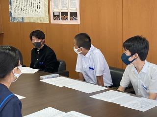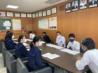 先日の生徒会ミーティングに続いて、学年プロ委ミーティングを本日昼休みに校長室で行いました。学校の柱として模範的な姿を示してくれている3年生にとって、有終の美を飾る半年間とするために、永井校長先生と語り合いました。