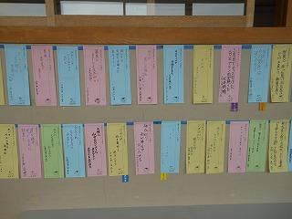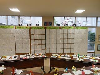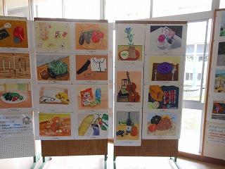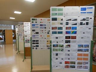 展示コーナーは、2年生の総合的な学習の作品や1年生の津幡町調べ・ゆるきゃら作品のほか、美術部や家庭部の作品が飾られています。保護者の皆様は来週の学校公開でご覧ください。展示ホールはスクールリサイクルの会場になりますので、場所は当日のご案内で確認してください。