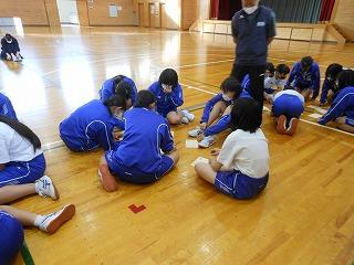 昨日は4限で終わり、13:25に放課でした。河北郡市の6中学校の先生方が教科ごとに分かれ、研修会を行いました。本校では国語・数学・保健体育の3教科の部会が行われ、保健体育科では1年3組の授業を公開しました。「トップスピードの状態でバトンパスをするにはどうしたらよいだろう?」を課題に、スピードにのったバトンパスができるように技能を高めました。多くの先生方の参観がありましたが、いつもどおり前向きな3組の生徒たちでした。