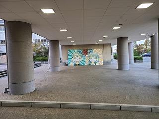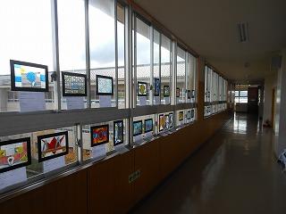 美術室前の廊下には3年生が制作したステンドグラスが飾られています。
