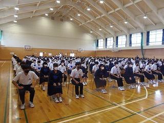 昨日の6限目に、後期生徒会役員・学級役員の任命式を行いました。生徒会担当の廣瀨先生の呼名に対して、3年生を中心に立派な返事で応えてくれ、大変引き締まった雰囲気の式となりました。あの3年生の姿や青木生徒会長の演説を聞きながら、下級生が憧れのまなざしで見つめる姿が印象的でした。