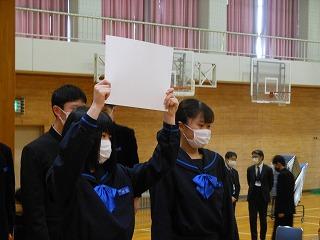 3年生は全校集会後の2・3限に最後の面接練習や問題演習に取り組み、4・5限と卒業式練習を行っています。いよいよ証書授与のリハーサルです。呼名に対する大きな返事も聞こえています。
