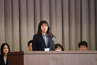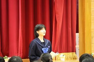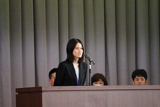 生徒代表として、生徒会副会長の槇矢とな美さんが歓迎の言葉を述べました。