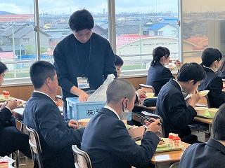 また、給食も本日より始まり、1年生も盛り付けの係を決めて中学校での初めての給食でした。