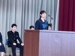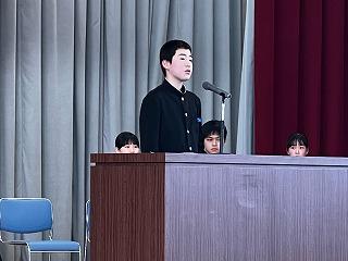 生徒からは、代表として生徒会副会長 船木竜之介さんから感謝の言葉が述べられました。