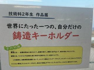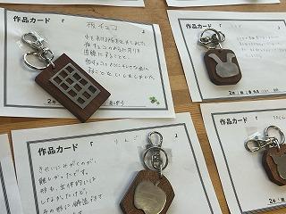 職員室前には、2年生が技術の時間に制作したキーホルダーが飾られています。