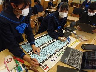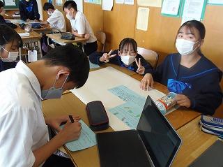 今週末の学校祭に向けての準備が先週金曜日から本格化しています。今日も5限目はグループごとの活動です。各学年が校外学習のまとめ掲示作成に取り組んでいます。