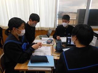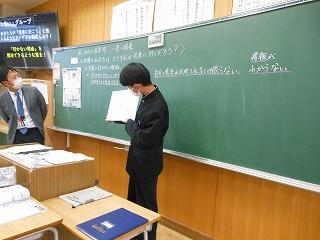 昨日の6限目も石川県教育委員会の先生をお招きしての研究授業を行いました。3年3組の教室で担任の髙田先生が小単元「選挙の課題と私たちの政治参加」において「4年後の私たちは、どうすれば投票に行くだろう?」を課題にchromebookも使用しながら授業実践しました。生徒たちは若者の投票率を上げるにはどうすればよいか、投票のしくみとともに主権者として自分たちがどうあるべきかについても考えていました。