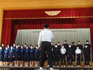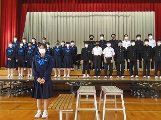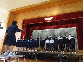 今日・明日の2日間で合唱コンクールのリハーサルを行っています。今日の5限は1年生が、6限は3年生が、明日の4限は2年生のリハーサルです。他クラスの合唱を聞いて、帰りホームの練習にも気合いが入ったようです。本番は来週の木曜日、素敵な歌声が響く校舎です。