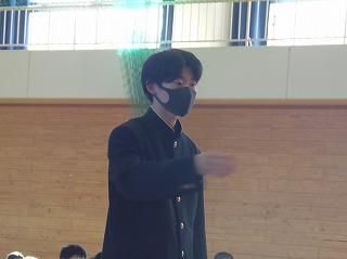吹奏楽部 吉田教育長様の激励を受け、出発!