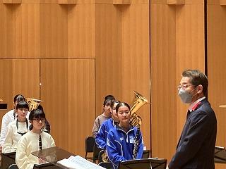 演奏後、激励の言葉をいただき、部員の表情もますます代表チームとしての自覚にあふれるものとなりました。