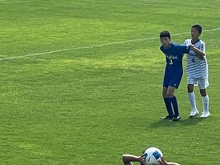 前半、北辰中に1点を先制される苦しいスタートとなりましたが、その後、中山さんがゴール右上に蹴り込み、同点に。