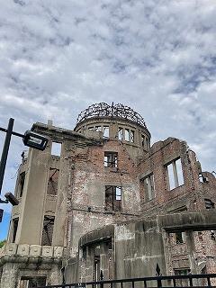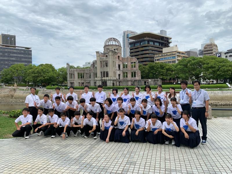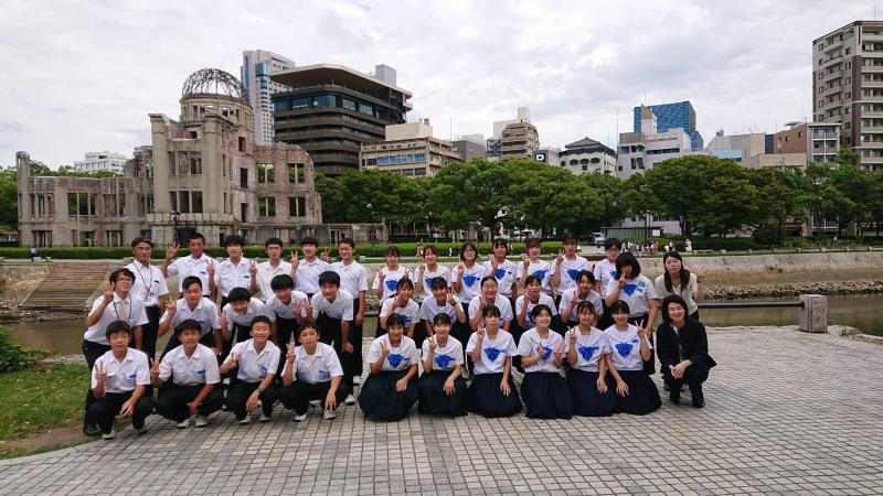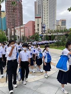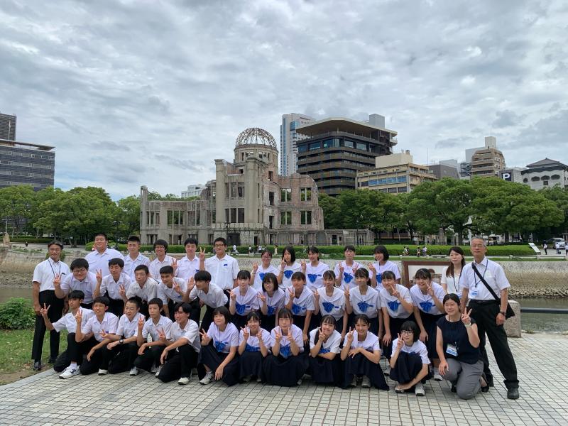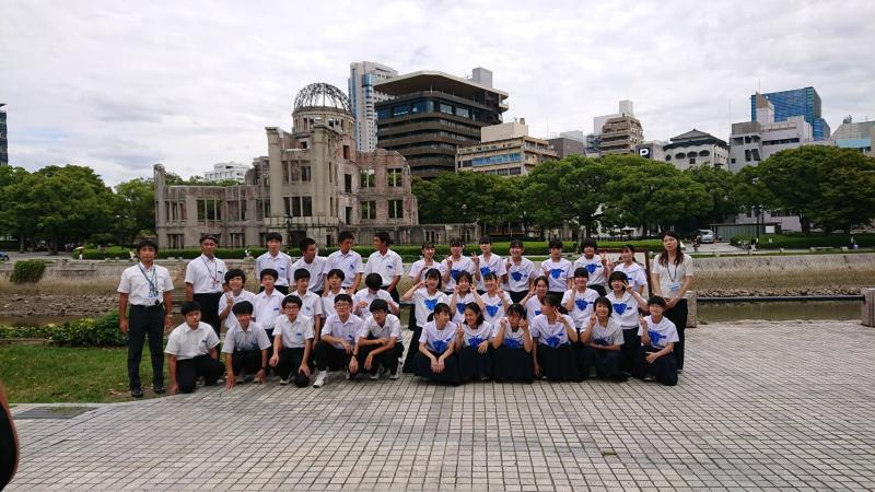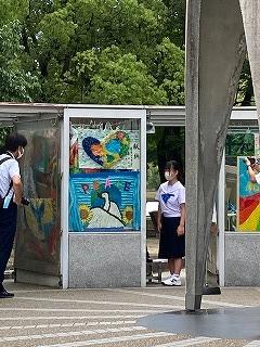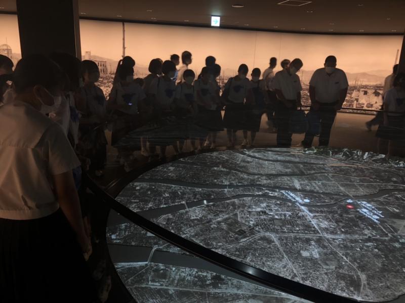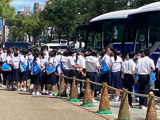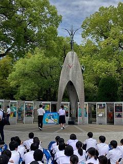 昼食後は平和公園で平和集会を行い、平和記念資料館を見学しました。