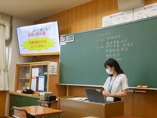 3年ぶりの修学旅行の日、PTAでも3年ぶりに家庭教育部の給食試食会を行いました。15名の保護者の皆さんが参加され、まずは1・2年生の配膳の様子を見学、その後実際に試食いただきました。今日のメニューはご飯、豚肉のおいだれ、もやしの酢の物、かぼちゃのみそ汁。栄養士の濱本さんのお話にも熱心に耳を傾けてくださいました。