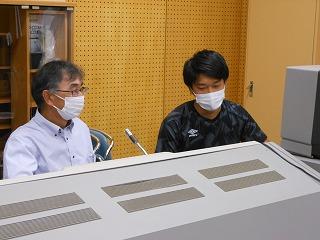 3年生がいない3日間、給食の放送は1年生の先生方が担当しています。