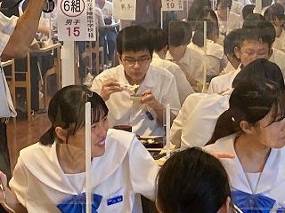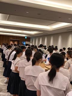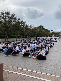 午後6時45分に6台のバスが学校に到着し、解散式を行いました。今日は各家庭で思い出話に花が咲きそうですね。