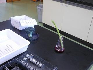 ▽2年理科「植物~水は茎のどこを通っているのか」