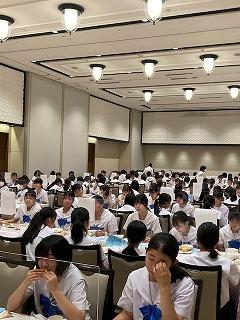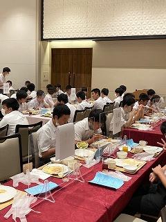 新大阪駅からバスに乗り、リーベルホテルアットUSJに到着した生徒たちはすぐに夕食バイキングをいただきました。明日はUSJです。どのアトラクションに乗るのでしょうか。