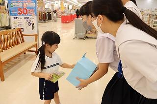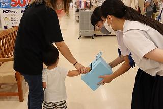元気よくあいさつをして、来店した方々に募金を呼びかけます。