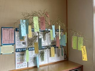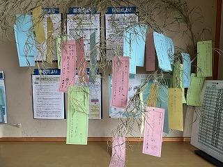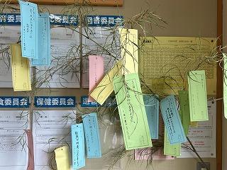2年生の教室には、七夕の飾り付けがされ、願い事が書かれた短冊が結ばれて飾られています。