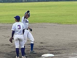 初回、先発の九野さんは先頭バッターにセンター前に運ばれ、また、後続のバッターに3塁打を打たれ失点しました。しかし、九野さん、畠中さんのバッテリーは続くバッターのサインプレーを見抜いて3塁ランナーをアウトにし、最少失点で切り抜けました。