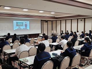 14日(金曜日)、1年生も校外学習で進路学習のスタートを切りました。午前中は金沢市本多の森ホール横のジョブカフェいしかわでキャリアガイダンス、職業講話、ビデオ学習、適性診断・疑似体験と盛りだくさんの内容で興味関心を高めました。