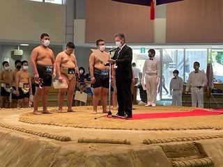 その後、本校相撲部員と3年生を交えて写真撮影、大会をとじました。