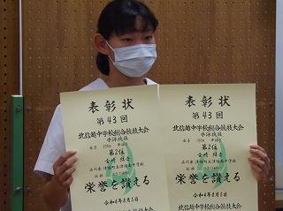 4日(日曜日)に小松市末広プールで第12回石川県中学校新人水泳競技大会が開催されました。本校から、1・2年生2人が出場し、2人とも入賞することができました。