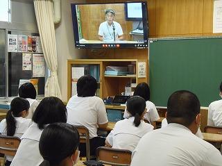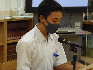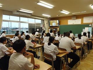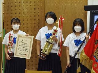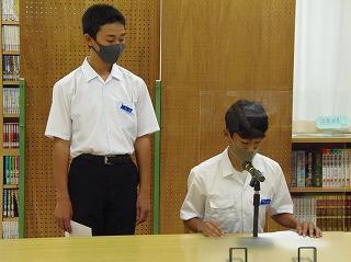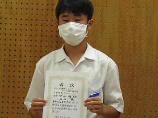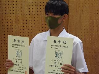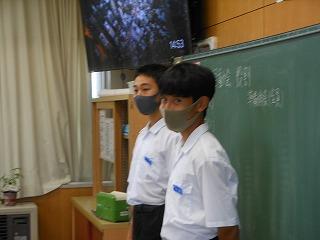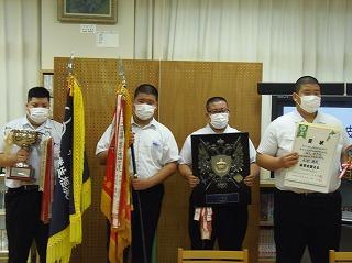 今日は登校時に大雨でしたが、生徒たちは元気に登校しました。朝清掃の後、始業式・全校集会をリモートで行いました。まずは夏休み中に行われた大会の表彰披露です。