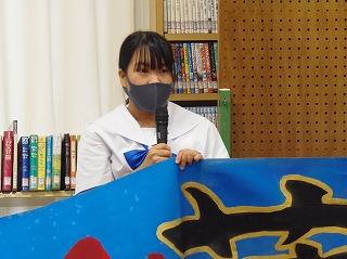 水泳部の金崎さん、相撲部の皆さん、野球部の高磯くん、吹奏楽部の皆さん、水泳競技の加藤くん、硬式テニスの中山さんが披露しました。
