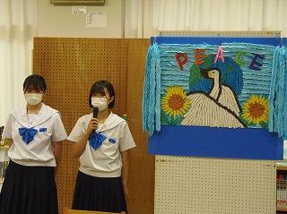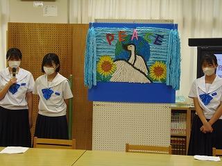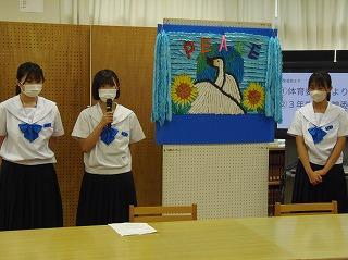 最後に、来週の修学旅行で広島市に届ける「折り鶴モニュメント」を3年生が紹介してくれました。